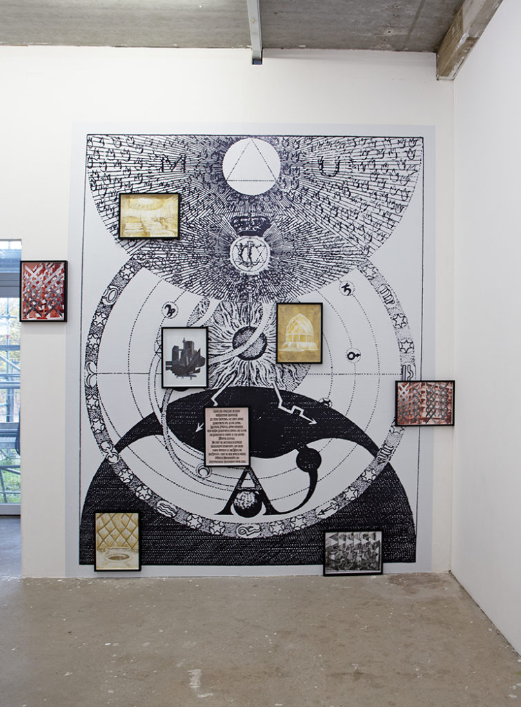 Der Titel von Chazeix’ Installation eröffnet vielfältige Zugänge zu seiner künstlerischen Methode: „Eine goldene Kuppel für Köln – eine verlorene Trophäe; eine Kristallsphäre, durch die ein Fluss fließt; ein Ort, an dem alchemistische Visionen – unter ihnen jene Rudolf Steiners – den Klang der Planeten und die Harmonie der Künste heraufbeschwören.“